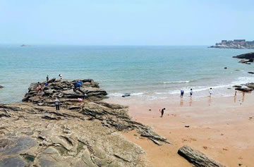 環(huán)繞連島的是湛藍(lán)的大海,穿行于青山林陰之下,舉首遠(yuǎn)眺蒼茫大海,平日勞頓身心豁然舒暢,愉悅情懷由衷而生。在連島大沙灣、蘇馬灣各有一處天然海濱浴場,那里浪緩灘平,水清沙細(xì),國際標(biāo)準(zhǔn)海水游泳水溫期長達(dá)80天,是踏浪戲海的理想之地。久居城市的人,在鋼筋和混凝土的叢林中,飽受喧囂之鬧俗欲之累,來到連島蘇馬灣,傾聽萬年如一的潮聲濤語,山海的永恒博大,讓郁積于胸的煩情愁緒頃刻間遁于無形,甚至將自我都融入了蒼茫的海天之中。