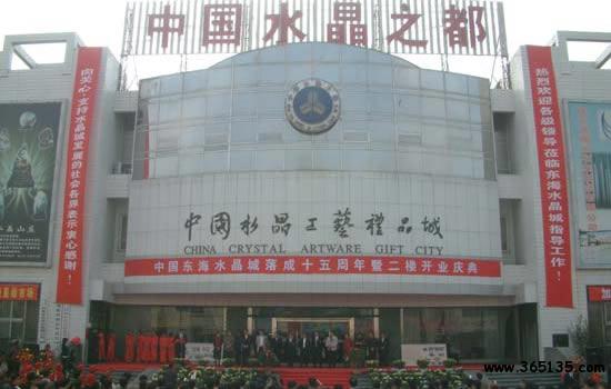 水晶制品,連云港市東?h是中國的“水晶之鄉(xiāng)”。這里水晶以白色為主,也有煙、茶、黃、粉紅和紫等諸色。還有晶體內含有毛發(fā)狀的“發(fā)晶”,含草木狀的“草木晶”,含水珠的“水膽晶”。