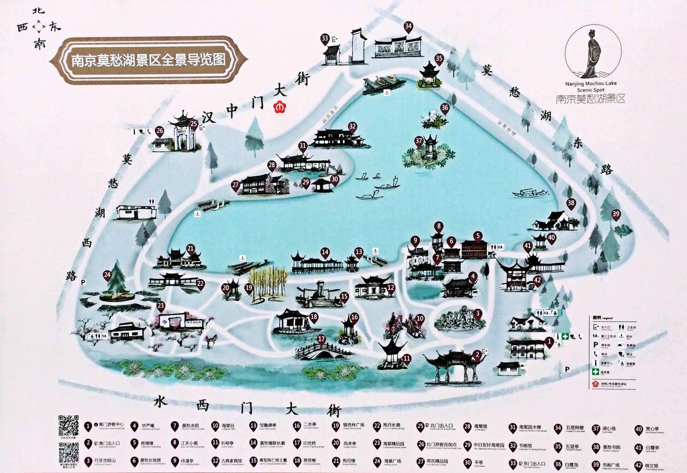 莫愁湖屬于淺水湖泊,由長(zhǎng)江、秦淮河沖積平原的低洼處積水而成,原是秦淮河入江口河槽,因泥沙淤積而成湖。南北長(zhǎng)約680米,東西寬約770米,湖面標(biāo)高4米,主要功能為景觀水域和非直接接觸的娛樂(lè)用水,已無(wú)調(diào)蓄能力。莫愁湖景區(qū)內(nèi)有莫愁女故居、郁金堂、蘇合廂、勝棋樓、華嚴(yán)庵、莫愁水院、棋文館、粵軍陣亡將士墓、抱月樓、海棠精品園、中日友好鳶尾園等主要景觀。
