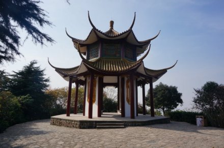 碧云亭位于虎山之巔,又名“望江亭”,平頂崗巒貌似半島,向北伸出,三面均是懸?guī)r,僅一石與山道相連,構(gòu)成別具一格,是以險取勝的景點。其東側(cè)深谷陡壁,巖石裸露,峻峭無比,西側(cè),由松濤林海鋪成的起伏崗巒,向北眺望,長江盡收眼底。