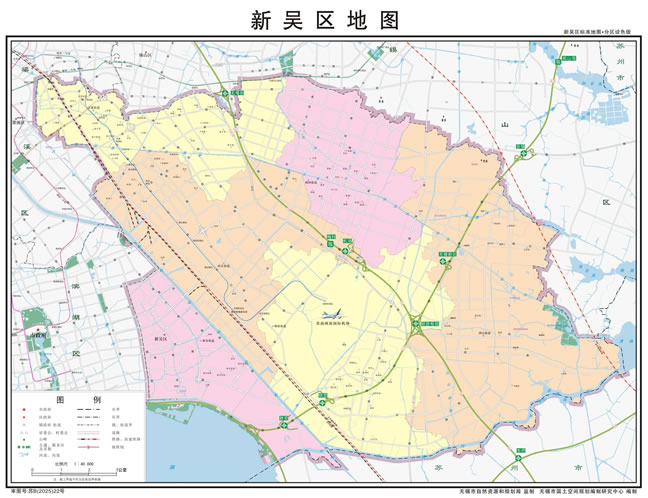位置境域 新吳區(qū)位于無錫市東南部,北鄰錫山區(qū),西靠濱湖區(qū),東與蘇州市相城區(qū)接壤,南與蘇州市虎丘區(qū)隔望虞河相望,介于北緯31°7′至32°2′,東經(jīng)119°33′至120°38之間,總面積220平方千米。