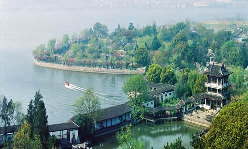 蠡園,離無(wú)錫市區(qū)10公里,坐落在蠡湖北岸的青祁村,面積8.2公頃,水面占3.5公頃。園以湖名,湖因園勝,曲岸枕水,秀麗明媚。錯(cuò)落在綠樹(shù)花影中的亭廊橋榭,散發(fā)出水鄉(xiāng)園林的特有風(fēng)姿。