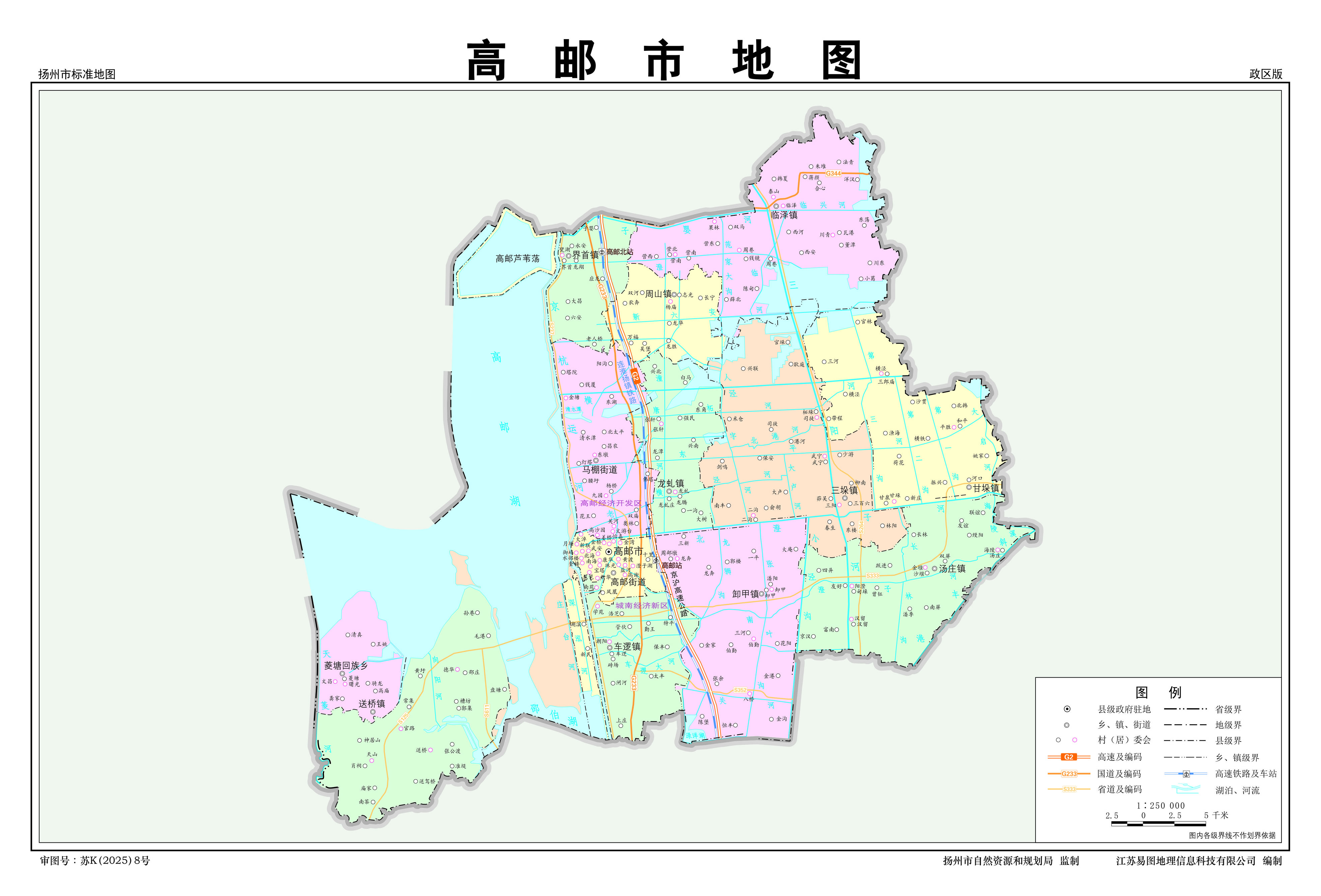 高郵市轄19個(gè)鎮(zhèn)、1個(gè)民族鄉(xiāng):