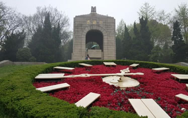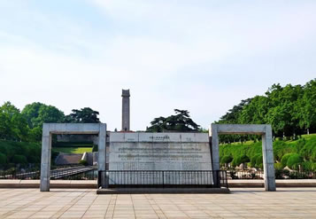 兩側(cè)的環(huán)陵大道可直達雨花臺主峰,主峰上矗立著一塊42.3米高的石碑,碑身正面鐫刻著鄧小平親筆題寫的"革命烈士紀念碑"七個金字,背面刻著紀念碑文。碑前還豎有一座高5.5米的烈士青銅塑像。在紀念碑南邊的山崗上還有一座呈"U "字型,頗具民族風(fēng)格的花崗巖結(jié)構(gòu)的大型建筑--"革命烈士紀念館"。館長94米、寬49米,主堡高26米,建筑面積5900平方米,館內(nèi)陳列著烈士們的遺像、遺書和遺物等。