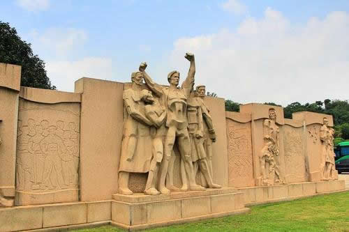位于雨花臺北殉難處,高10.3米、寬14.2米,由179塊花崗巖拼裝而成,再現(xiàn)了革命烈士就義時的英勇形象。
