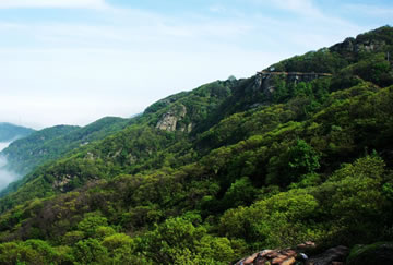 蓬壺仙境—二桅尖位于后云臺山北麓,隔鷹游海峽與連島對峙,緊鄰大桅尖,海拔503.7米。這里山勢雄峻、重巒疊嶂,山海相連、峰高海闊,海波與山色相映,水汽嵐光、變幻莫測,云蒸霞蔚、氣象萬千,是展示連云港東方大港、山海風(fēng)光的精華所在。主要景點有:“海天一覽”、“一線天”、“迎曙峰”、“凌空踏浪”、“云中漫步”、“云臺神鷹”、“神龜探!薄ⅰ霸婆_冰瀑”、“鐵血峰臺”等。其中,“云臺鋪海”、“曙峰旭照”、“海市蜃樓”等獨特景觀,久負(fù)盛名。景區(qū)容“雄、奇、險、幽、秀”于一體,集“山、海、港、城、島”于一覽,被譽(yù)為江蘇省獨一無二的“山海奇觀”。