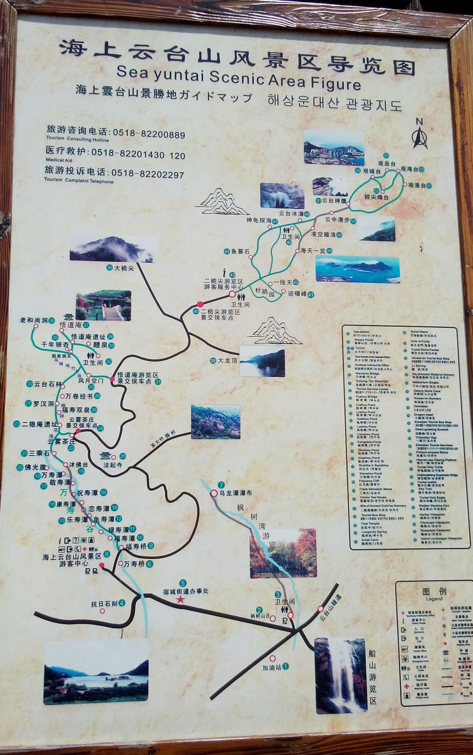 云臺山古稱郁州山,唐宋時稱蒼梧山。唐李白詩:“明月不歸沉碧海,白云愁色滿蒼梧!彼翁K軾詩:“郁郁蒼梧海上山,蓬萊方丈有無間”,寫的都是云臺山。她原來只是黃海中的一列島嶼,18世紀(jì)方與大陸相連。遂形成峻峰深澗,奇巖坦坡,山光水色,獨具神姿 ,被譽(yù)為:“海內(nèi)四大名靈”之一。明嘉靖年間道教興盛 ,道士云集達(dá)兩萬之眾,山又被譽(yù)為“七十一福地。