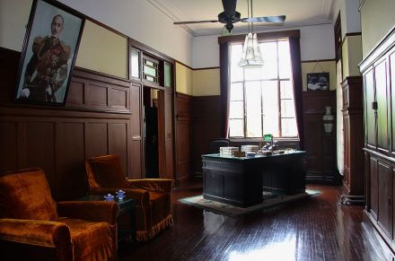 長(zhǎng)廊后的兩層西式樓房建于1925年,是子超樓建成前總統(tǒng)府內(nèi)最好的辦公樓,曾作為文官處辦公樓,后來是政務(wù)局辦公樓。