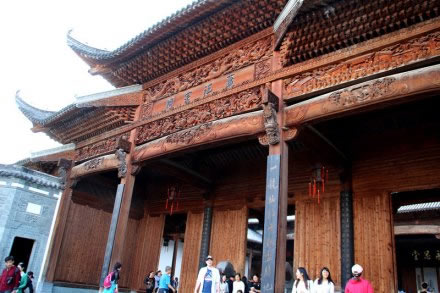 蕭江宗祠 又名永思祠,座落在婺源縣江灣鎮(zhèn)占坑村,距婺源縣城32公里,江灣約2公里。始建于明朝萬歷六年(1587年),后毀于太平天國戰(zhàn)火。1924年(民國十三年)重建,文化大革命期間又被拆毀。蕭江宗祠曾被譽為江南七十座著名宗祠中“最好的一座宗祠”為婺源古代四大古建之首。2003年9月,第三次重建。該祠盡顯王室氣派,占地面積達2400平方米,分前院、前堂、中堂、后堂四進。前院為寬敞花園,設(shè)有青石護欄半月形蓮花池,內(nèi)養(yǎng)紅鯉魚、草魚、軍魚等多種魚類;前堂為五鳳樓、九脊頂、午朝門、月樓,梁材檐椽巧飾雕琢、畫面生動、形態(tài)逼真;中堂粗梁大柱,鼓式石礎(chǔ),石階、石欄、月臺各具特色,匾額楹聯(lián)措詞秀麗、授意深長;后堂高于前堂,有樓閣安放靈牌。
