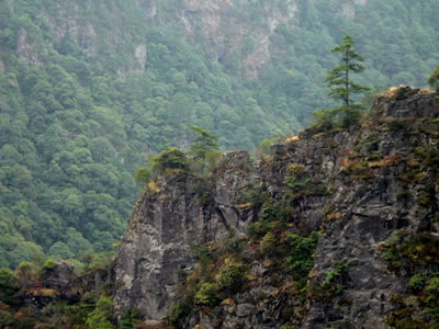 杜鵑山距茨坪西南面三十五公里,海拔1357米。主要由中峰 (揚眉峰)、西峰(望指峰)、東峰(觀島峰)三大峰組成。遠望猶如古代的筆架,故名筆架山。