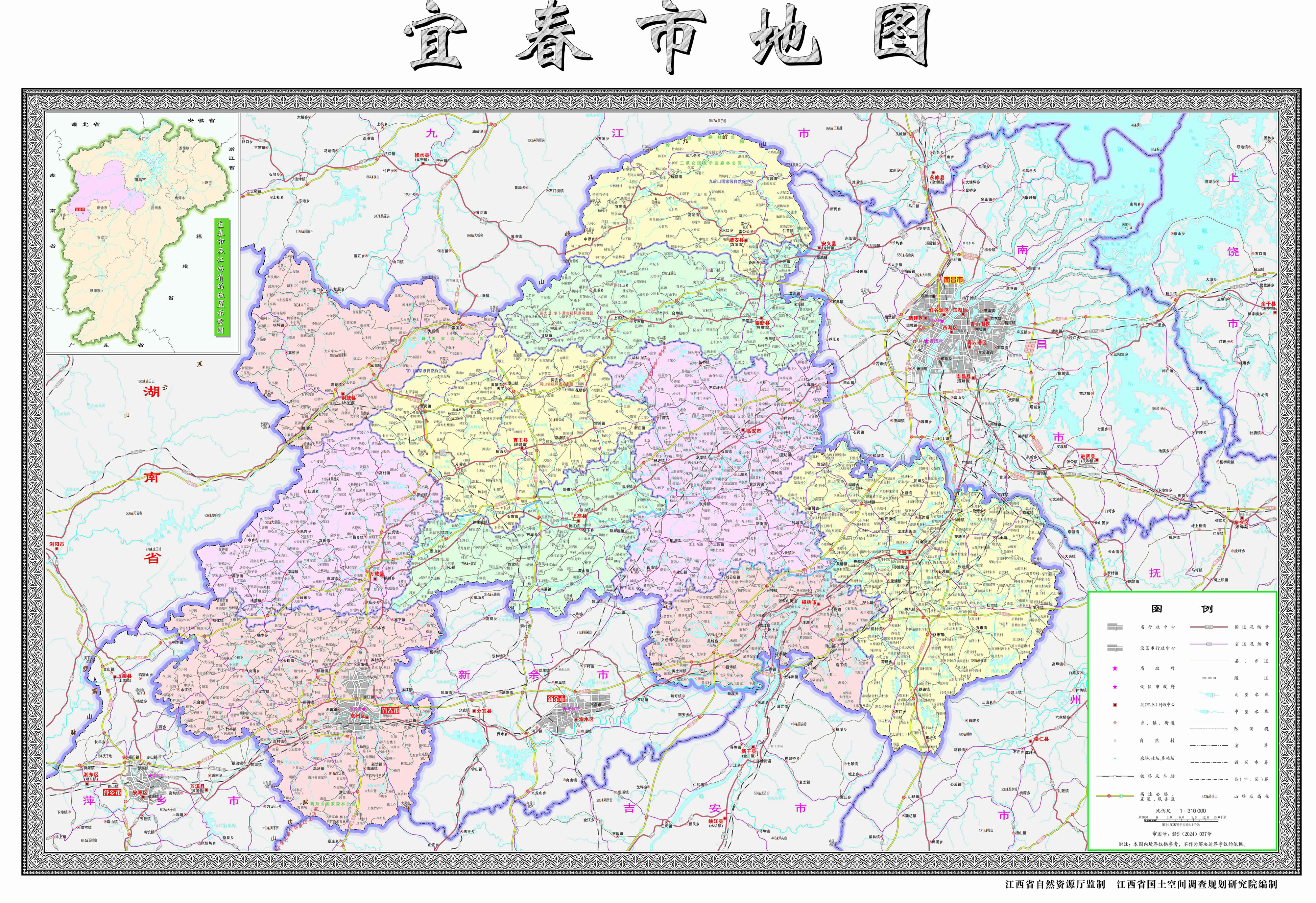 宜春市位于江西省西北部,東境與南昌市接界,東南與撫州市為鄰,南陲與吉安市及新余市毗連,西南與萍鄉(xiāng)市接壤,西北與湖南省的長沙市及岳陽市交界,北與九江市相鄰。境內東西長約222.75千米,南北寬約174千米,總面積1.87萬平方千米。