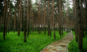 森林浴場種植了4萬平萬米的樟子松林,樟子松特點是樹干底部為灰黑色,上部為紅褐色,外形比較美觀,與長白山的美人松很相像,屬于常綠喬木,最高可達30 米,耐寒性和適應(yīng)性都很強。這樣完美整齊的樟子松林,在國內(nèi)都屬罕見。橫穿森林浴場的小路是由冰片石鋪成的,取材遼寧本溪,是一種帶有蕨類植物的化石。