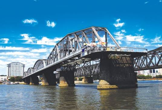 鴨綠江斷橋為鴨綠江上諸多橋中第一座橋,由日本朝鮮總督府鐵道局所建。1909年5月動工,1911年10月竣工。1950年11月,被美國空軍炸斷。戰(zhàn)后中方一側(cè)所剩四孔殘橋一直保留,被習(xí)慣上稱為“斷橋”,朝方一側(cè)則把所屬六孔和中方剩余兩孔殘橋拆除,僅存橋墩。