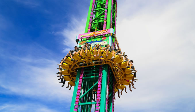 太空飛梭是大型高空彈射類項(xiàng)目,屬于跳樓機(jī)的一種。想體驗(yàn)彈射到太空又迅速返回的快感嗎?來太空飛梭吧!國(guó)內(nèi)最高的驚險(xiǎn)項(xiàng)目,可瞬間提升到40米的高空,急速下降時(shí)的驚險(xiǎn)直擊心靈,快來體驗(yàn)前所未有的失重的快感吧!