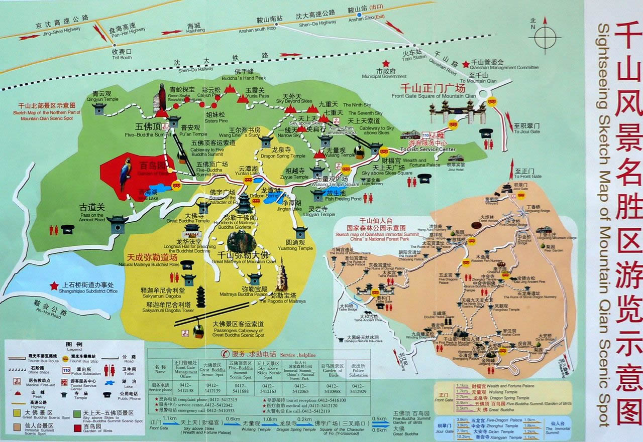千山南臨渤海,北接長(zhǎng)白山,群峰拔地,萬(wàn)笏朝天,以峰秀、石峭、谷幽、廟古、佛高、松奇、花盛而著稱,具有景點(diǎn)密集、步移景異、玲瓏剔透的特色。