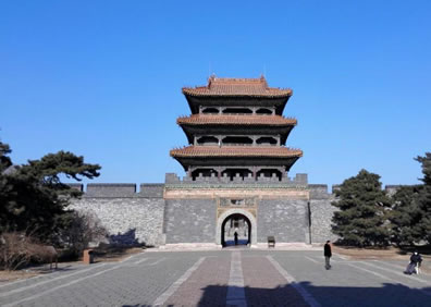 過了石橋不遠處就是石牌坊,位于通往正紅門的中間路段,其上雕刻生動形象,是清代雕刻的珍品。過了石牌坊,就是正紅門了,是陵寢的大門,兩側(cè)院落東為更衣亭西為宰牲亭。
