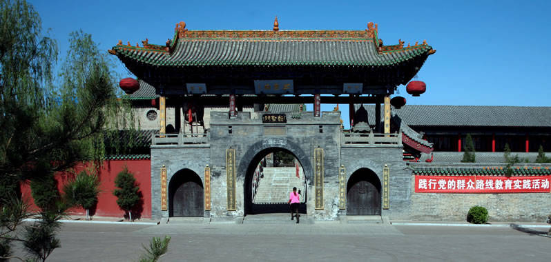 孝義市三皇廟,亦稱圣祖廟,位于孝義市城西賈家莊村中,F(xiàn)存建筑最早為元代遺構(gòu)。元、明、清和民國(guó)年間曾不同程度進(jìn)行擴(kuò)建和修葺。該廟南北寬59米,東西長(zhǎng)84米,兩進(jìn)院布局。遒勁有力的“三皇廟”鑲嵌在山門(mén)的門(mén)額上。中軸線建有樂(lè)樓、三皇殿。頭院空闊,北角設(shè)磚券山門(mén),二進(jìn)院北角設(shè)掖門(mén)為一、二進(jìn)院出入通道。兩進(jìn)院落自然地平落差較大,故掖門(mén)前設(shè)踏步緩解。三皇殿坐西向東,面闊三間,進(jìn)深四架椽,梁架為三椽,前壓搭牽用三柱,單檐硬山頂前廊式。三皇殿內(nèi)仍保存元代結(jié)構(gòu)。三皇殿門(mén)上方掛有匾額,書(shū)寫(xiě)“三皇廟”為明萬(wàn)歷十年十月四川按察使梁明翰贈(zèng)。殿內(nèi)正面供奉太昊伏羲、神農(nóng)炎帝、軒轅黃帝,兩側(cè)配祀古代十大名醫(yī),山墻繪有“行醫(yī)圖”壁畫(huà),壁畫(huà)色彩明艷,線條清晰。大殿對(duì)面樂(lè)樓坐東向西,面闊三間,進(jìn)深五架椽,單檐卷棚頂。前后臺(tái)隔架和頂棚全為彩畫(huà)木式組成,臺(tái)口四周有木、磚、石雕刻清代遺構(gòu)。臺(tái)口上方高懸民國(guó)八年所刻匾額一塊,上書(shū)“海市蜃樓”,由晚清書(shū)法名家秦龍光所書(shū)。樂(lè)樓藻井彩繪梁山好漢一百零八將,神彩各異,栩栩如生。前后臺(tái)間,鑲嵌大塊玻璃為整座戲臺(tái)增光添彩,時(shí)有“玻璃戲臺(tái)”的美譽(yù),曾形成邑內(nèi)外“為看戲臺(tái)而看戲”的時(shí)尚。