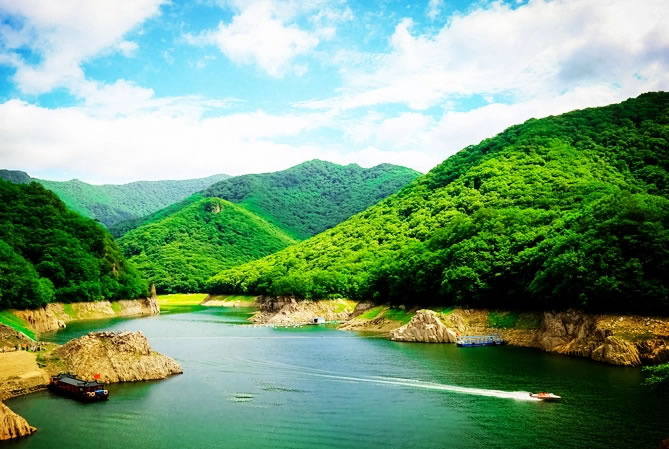 關(guān)山湖旅游風(fēng)景區(qū)位于遼寧省東南部本溪滿族自治縣境內(nèi),“關(guān)門山原址”所在地,素有“小黃山”“小桂林”之稱;面積三十多平方公里,水面五千余畝;景點(diǎn)近百處,森林覆蓋率達(dá)97.5%以上,夏季平均濕度:68,負(fù)氧離子含量每立方厘米3萬左右。關(guān)山湖旅游風(fēng)景區(qū)是“全國楓葉之鄉(xiāng)·本溪縣”唯一集"山、水、楓、湖、船"為一體的自然風(fēng)景名勝區(qū)。關(guān)山湖宛如一塊絕美碧玉鑲嵌于山水畫卷之中,其“山、水、霧、花、楓”之五美體現(xiàn)的淋漓盡致,難怪游人發(fā)出“不到關(guān)山湖,枉為關(guān)山客”的慨嘆。