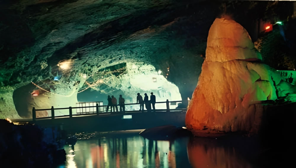 - 洞內(nèi)有中國(guó)最大的地下河,全長(zhǎng)400米,水深1-10米,可容納萬(wàn)余人。