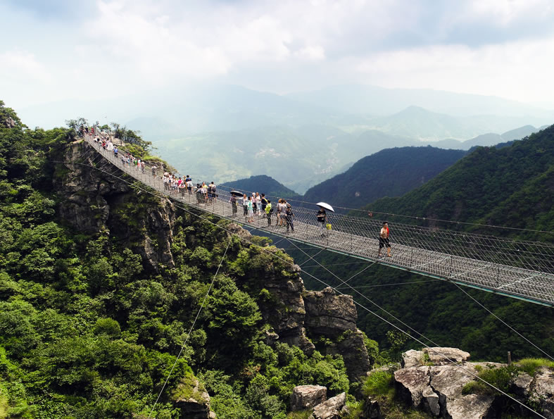 • 鏤空鐵索橋:中國(guó)第一鵲橋,全長(zhǎng)168米,垂直高度398米。