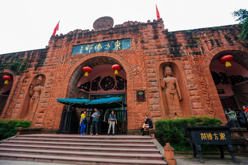 東方佛都,位于四川省樂山市市中區(qū)。與樂山大佛景區(qū)一門相通,在樂山大佛的后山,同為世界“雙遺產(chǎn)”的保護范圍。轄林地千余畝。樂山大佛和東方佛都所在的凌云九峰,唐代時“峰各有寺”,后被抗元戰(zhàn)火所毀,僅存形單影只的樂山大佛。而今,東方佛都,循古人遺跡,還原唐代風貌。林隱千佛,洞中百窟,為當代摩崖石窟藝術(shù)的典范。東方佛都,是樂山大佛佛文化的延伸,極大的豐富了樂山大佛的佛文化內(nèi)容。
