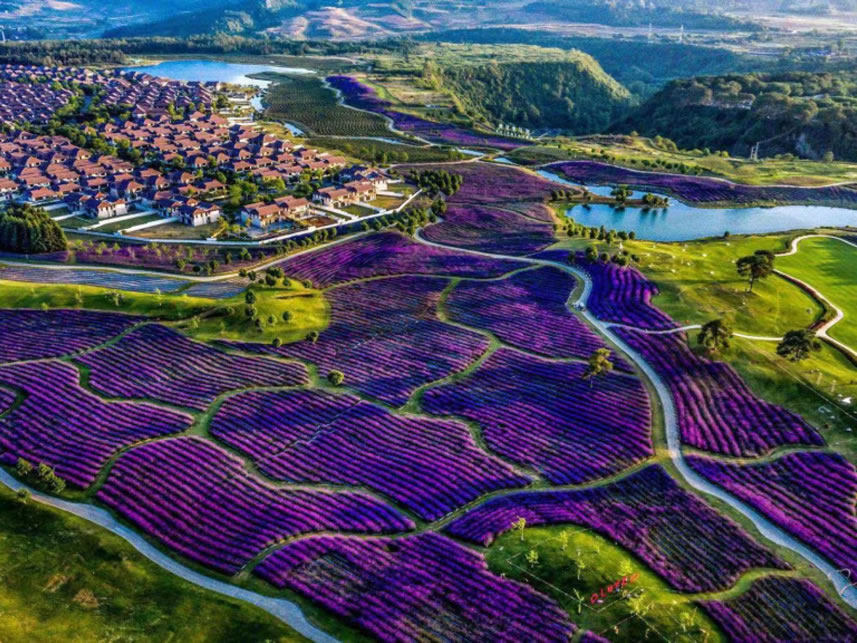 • 特色:百畝馬鞭草、繡球花、百合花田,設(shè)鋼琴藝術(shù)裝置、秋千等互動(dòng)設(shè)施。
