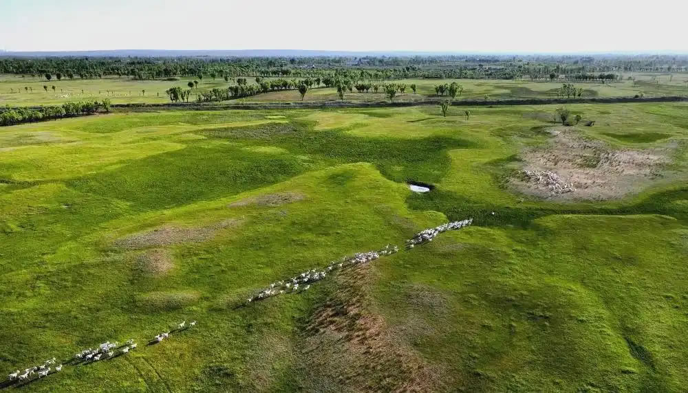 爾林兔草原地處鄂爾多斯高原與毛烏素沙漠過渡地帶,位于紅堿淖風景名勝區(qū)東側。該區(qū)域通過生態(tài)治理實現(xiàn)從風沙草灘區(qū)向天然牧場的轉變,形成面積達70平方公里的草原景觀。建有萬畝草原、千畝花海等核心景觀,開發(fā)了騎馬馳騁、草原露營等特色旅游項目。