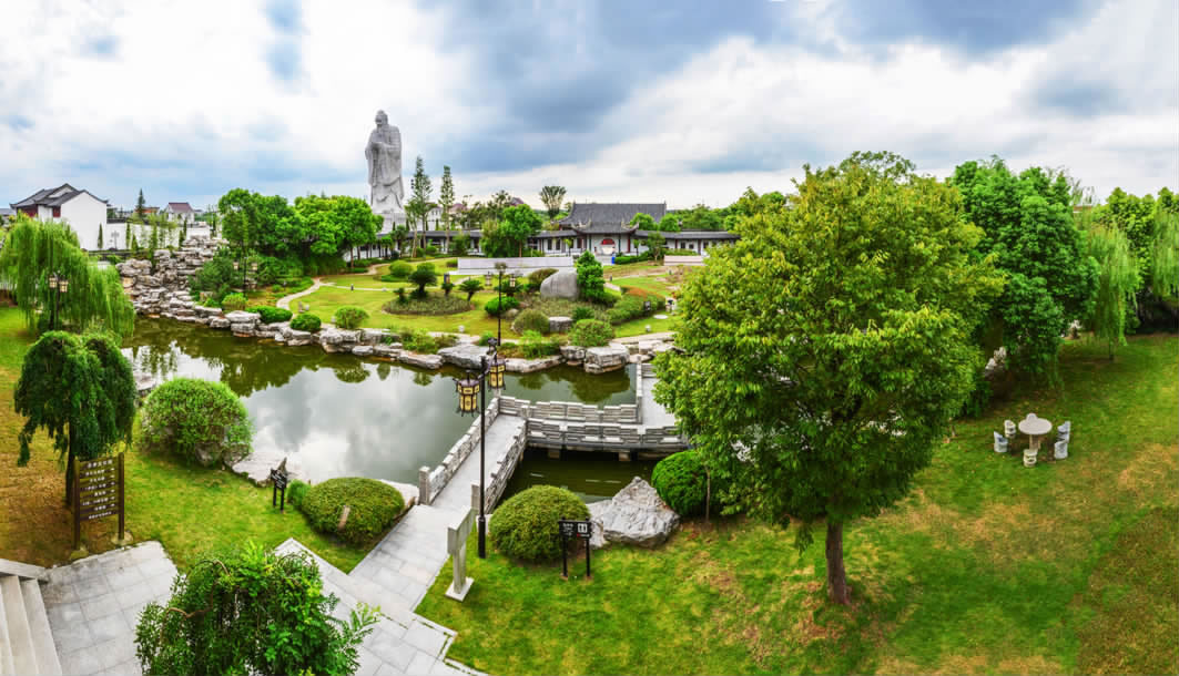 忠孝文化園位于江蘇省南通市通州區(qū)東社鎮(zhèn)鎮(zhèn)區(qū)北側500米,占地面積160畝,總投資3.2億元,分四期工程建設,由同濟大學設計為具有明末清初風格的江南園林式建筑。該園以陸鳳彬將軍祖宅為基礎建造,2008年11月竣工開園,是國內首個以"忠孝"為主題的人文景觀。園區(qū)主體建筑包含思苑樓、忠孝坊、中華柱、忠孝文化長廊及六角忠孝亭,陳列24忠24孝故事石刻、《孝經》石刻長卷和唐至近現代硯臺50余方。園內矗立國內最高孔子石雕像,通高32米,由480余塊石質部件拼接而成,重約千噸,以唐代吳道子畫像為藍本雕刻。聚寶閣收藏四大偉人紅木雕像、百名將軍墨寶及趙樸初等書法家作品。該園免費對外開放,設有愛國主義教育展廳、國防教育展區(qū)及多功能影視廳,年均舉辦道德講堂、主題展演等教育活動百余場。配套服務設施包含水上餐廳、垂釣中心及可容納300人的宴會廳。