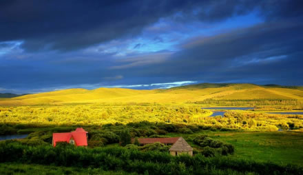 春季,五月的興安嶺上杜鵑花爭(zhēng)奇斗艷,尚未消融的皚皚白雪映著火紅的杜鵑花,是難得一見的人間圣景;夏季的呼倫貝爾氣候宜人,平均氣溫在16℃——21℃之間,是避暑的最佳去處,那醉人的綠色招引著你,站在草原上,看藍(lán)天上云卷云舒,心胸就會(huì)像草原一樣廣闊。鄂倫春族篝火節(jié)、草原那達(dá)慕、鄂溫克族瑟賓節(jié)、祭敖包等民族節(jié)日異彩紛呈。秋季奪人耳目的是那林海的秋色,聽林中松濤陣陣,賞亭亭玉立的白樺,到四方山、達(dá)爾濱羅看日出日落,大自然的美景令人留連忘返;走近冬天的呼倫貝爾,一個(gè)冰雕玉砌的世界,冰雪節(jié)的圣會(huì),讓您充分領(lǐng)略青松傲雪、暢游林海雪原的豪氣和由冰峰、雪嶺、冰雕構(gòu)成的一派雪韻風(fēng)情。