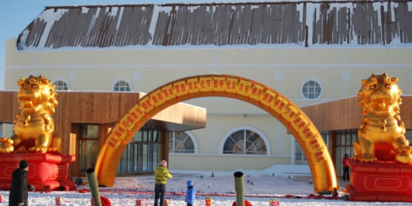 敖 生態(tài)環(huán)境 這里是森林與草原的界線,大興安嶺和呼倫貝爾大草原在這里交匯,一邊是草原、河流,一邊是森林、山崗,空氣新鮮,野味十足,當?shù)厝税氘斦娴恼f"這地方絕對沒有污染,連蒼蠅、蚊子都是綠食食品"。 國家給敖魯古雅鄉(xiāng)人建立了定居地,但馴鹿只能生活在森林里,所以除了在定居點的部分村民,密林中還散布著五個馴鹿站,最遠的在150公里。過去,敖魯古雅人養(yǎng)馴鹿只是作為運輸工具,一頭馴鹿可以負重35公斤左右,每小時可以行走5公里,1964年,取得了割鹿茸成功。現(xiàn)在,馴鹿已經(jīng)不大用來運輸了,而成了當?shù)厝说闹饕?jīng)濟來源,中國唯一的這群馴鹿大約只有10000只左右了。 敖鄉(xiāng)民俗村 敖魯古雅鄂溫克民俗村位于根河市西郊,南臨S301國道,交通十分便利。民俗村總建筑面積58,700平方米,是集大中型會議、休閑度假、民俗展示、娛樂為一體的綜合性旅游度假村,是一處自然——人文旅游 景觀。 民俗村依托森林、河流,鄂溫克獵民的民俗民風,推出一系列具有地方特色的旅游活動項目:主要有森林觀光、探險、模擬狩獵;觀民族宗教、歌舞、民俗表演;品嘗民族風味餐、參觀敖鄉(xiāng)新居、訪獵民等活動;村內(nèi)建有木質(zhì)別墅式的游客服務中心,民俗文化博物館、民俗表演平臺、表演廳和餐廳、反映鄂溫克獵民歷史的圖騰廣場、有四十、五十、六十年代不同的撮羅子,有上山索道車、木橋和四處風格獨特的獵民點;還有民俗表演隊和馴鹿車穿行其中,可對敖魯古雅鄂溫克獵民的歷史、文化、宗教、習俗進行了充分的展示。 敖魯古雅鄉(xiāng)距離我國最北端的漠河縣約一百公里左右的路程,位于大興安嶺深處的滿歸林區(qū)。這里氣候十分寒冷,記者走在蜿蜒的山路上,腳下的積雪發(fā)出“咯吱咯吱”的脆響,眼前已是呵氣成冰,身上的棉襖凍得硬梆梆的。隨行的鄉(xiāng)黨委書記鮑玉林說:“現(xiàn)在大約是零下30攝氏度,你們趕上好時候了,往年這個時候得有零下五十度,外面到處冒白煙。” 敖魯古雅鄉(xiāng)有一條主干道,長不過二三百米。道兩邊是整齊的幾排木刻楞房和磚瓦房,象征著主人的富裕程度。敖鄉(xiāng)雖小,卻擁有自己的博物館、學校、文化站和小商店。春節(jié)雖過,但喜慶氣氛尚濃,白雪映襯下,墻上的大紅對聯(lián)分外惹眼。 敖鄉(xiāng)生活著近500人,其中鄂溫克人大約有230人。他們現(xiàn)在已經(jīng)是獵民定居后的第三代了。在離此50到100多公里的山林中,還有四個獵民點,生活著30多名習慣于打獵和在山上飼養(yǎng)馴鹿的老獵民們。
