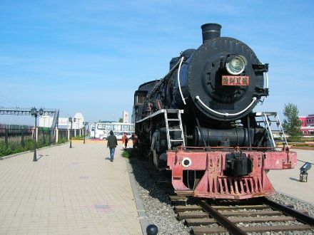 建成于2004年6月。陳列在這里的是一臺1940年日本制造的“亞西亞”型蒸汽機車,機車下面的鐵軌是1925年蘇聯(lián)制造的43鐵軌,這臺機車在中華大地上奔馳了半個多世紀,演繹了生命里程的“三部曲”,留下了許許多多鮮為人知的故事。建國初毛主席就是乘座這臺機車牽引的火車出訪蘇聯(lián)的。機車號是 “1861”,“18”代表的是滿洲里到俄羅斯后貝加爾斯克的距離,即18里。“61”是代表毛澤東在滿洲里期間,曾對駕駛這輛火車頭的司機長說過六句話:一定要與蘇聯(lián)同志搞好友鄰關(guān)系,一定要注重少數(shù)民族地區(qū)的相互團結(jié),一定要保障軍用列車的安全,一定要多學文化,一定要克服天氣寒冷帶來的困難,一定要注意身體。毛主席回國后,向全國人民發(fā)出了建設(shè)社會主義新中國的偉大號召。從1950年到1965年,這臺機車歡快地馳騁在祖國建設(shè)的鋼鐵運輸線上,立下了不可磨滅的功勛。因此,滿洲里人民又命名它為“滿洲里號”。