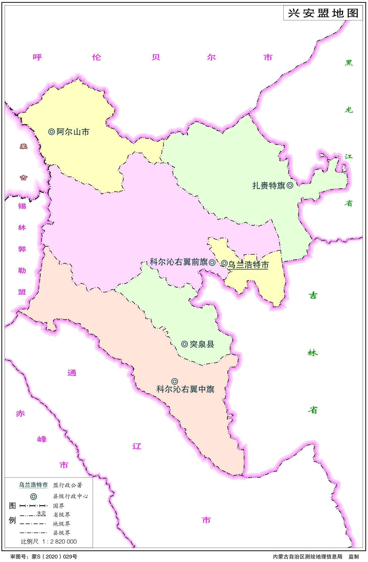 1952年,內蒙古成立東部區(qū)行政公署,駐烏蘭浩特市,興安盟的建制隨之撤銷。原興安盟與呼納盟合并,改稱呼倫貝爾盟。