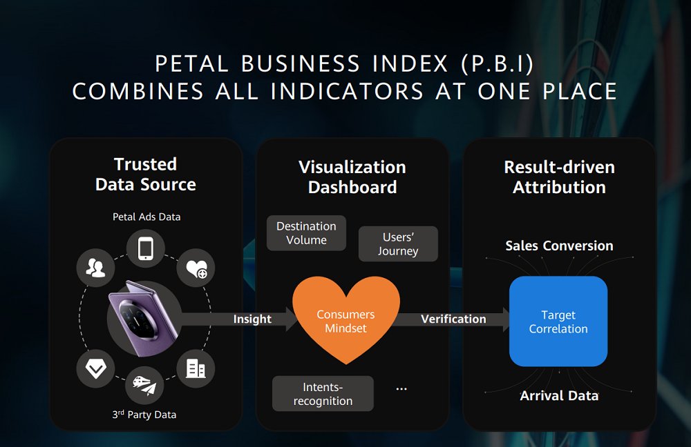 借助華為的技術(shù)和生態(tài)系統(tǒng)合作伙伴,鯨鴻動(dòng)能還構(gòu)建了Petal Business Index(P.B.I)跨境數(shù)據(jù)驅(qū)動(dòng)解決方案,以滿(mǎn)足更多企業(yè)組織的需求。作為以數(shù)據(jù)驅(qū)動(dòng)的營(yíng)銷(xiāo)工具,P.B.I整合了來(lái)自華為設(shè)備和鴻蒙生態(tài)的全方位數(shù)據(jù),并與第三方在線(xiàn)旅游服務(wù)平臺(tái)等行業(yè)伙伴合作,共同構(gòu)建了一個(gè)可信賴(lài)的數(shù)據(jù)模型,并圍繞目的地的關(guān)鍵指標(biāo)建立可視化的儀表板。P.B.I通過(guò)建立銷(xiāo)售轉(zhuǎn)化與落地?cái)?shù)據(jù)之間的相關(guān)模型,進(jìn)行有效性分析,輔助營(yíng)銷(xiāo)策略的制定。