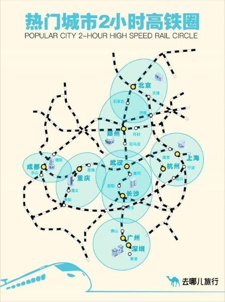 從去哪兒火車票預約情況來看,2小時高鐵圈內仍是旅客出游的主要目的地。北京2小時高鐵圈內,熱門目的地為天津、濟南、石家莊、秦皇島、大同;上海2小時高鐵圈,熱門目的地為杭州、蘇州、南京、湖州、寧波。