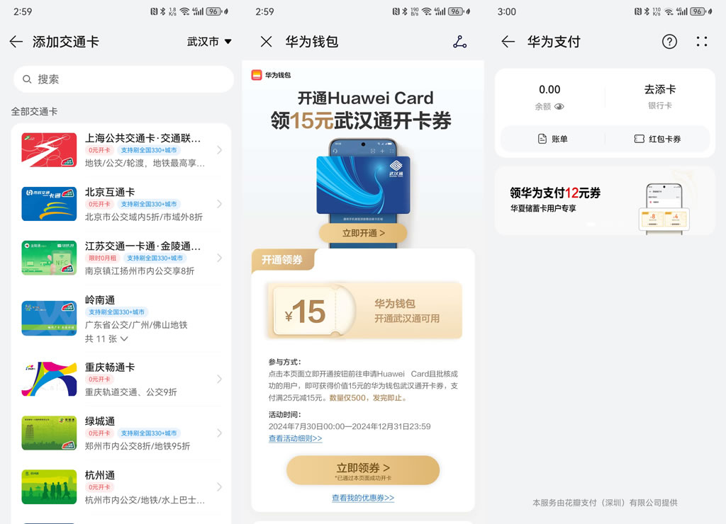 值得一提的是,華為錢包在國慶節(jié)期間還帶來了不少福利,比如開通公交卡0元起,一張卡就可刷全國330多個旅游城市;新用戶開卡充值交通卡還有特別折扣,9月23日至10月7日最高立減5元;如果需要高精度定位服務(wù)和車道級導(dǎo)航,新用戶使用華為錢包開卡首年0元,在負一屏充值手機話費或者加油時也可享受首單立減6元等優(yōu)惠。綁定銀行卡也有各種立減活動,十分劃算!