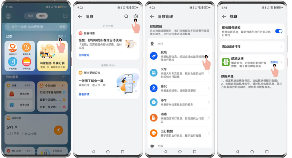 除了上面介紹的三個主要功能之外,華為手機的實用功能還有很多,比如華為Pura 70系列、Mate 60系列等機型只需要喚醒智慧助手小藝,就可以讓它根據(jù)目的地等條件編寫一篇使用的旅游攻略。甚至智慧識別判斷用戶是否需要出行服務(wù),并通過卡片實時顯示高鐵、航班或者打車信息。通過手機負一屏,右劃一下,也可以很方便的調(diào)用“航旅縱橫”值機,或者“鐵路12306”乘坐高鐵。