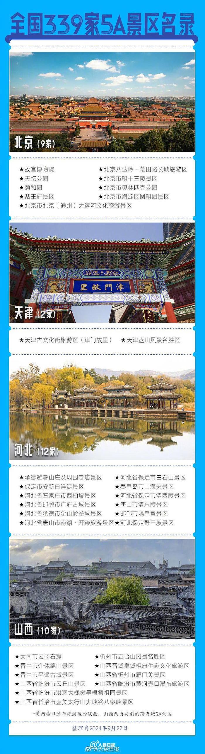 還有1天國慶。截至目前,全國共有339家5A景區(qū)。收好這份5A景區(qū)全名單,這個假期,你想去哪玩?