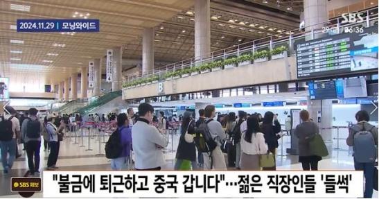 韓國機場排起長隊(韓國SBS電視臺報道截圖)