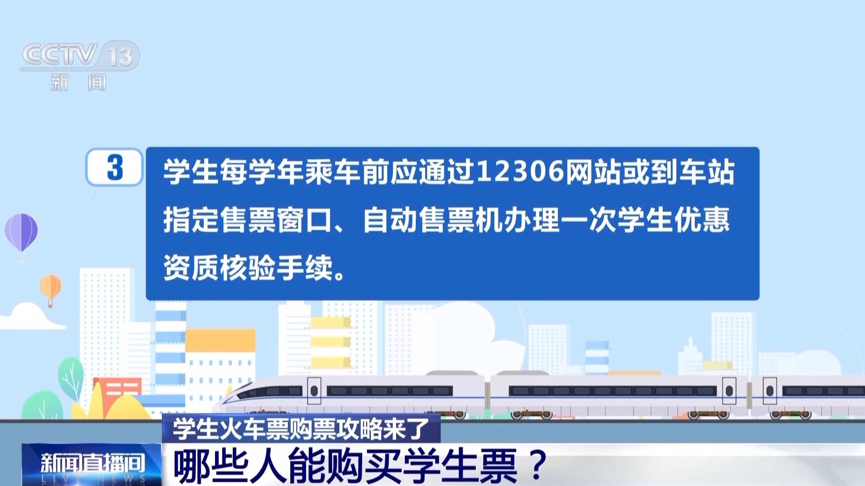 學生每學年乘車前應通過12306網(wǎng)站或到車站指定售票窗口、自動售票機辦理一次學生優(yōu)惠資質(zhì)核驗手續(xù)。