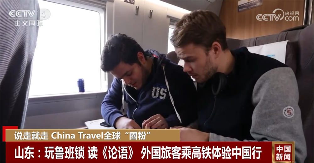 隨著過境免簽外國(guó)人在境停留時(shí)間延長(zhǎng)為240小時(shí)等政策的實(shí)施,便捷的中國(guó)高鐵也成為了越來越多外國(guó)游客游覽中國(guó)的一種選擇。在青島開往濟(jì)南東方向的G6910次列車上,來自挪威的旅客哈蘭正興趣盎然地和來自埃及、同樣喜歡中國(guó)傳統(tǒng)建筑榫卯結(jié)構(gòu)的同伴易卜拉欣一起研究魯班鎖的玩法。