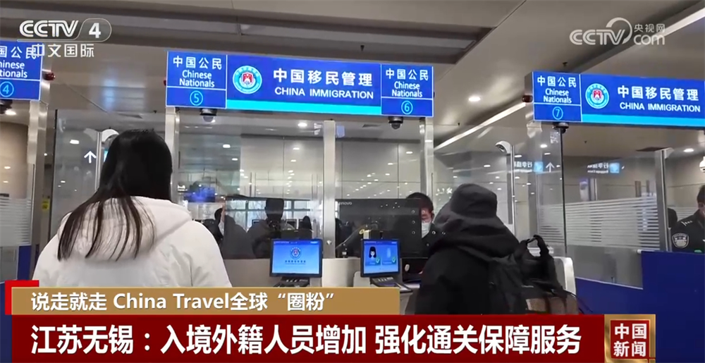 隨著外國(guó)人使用過境免簽新政入境人數(shù)的增加,為更好服務(wù)外籍人員,無錫公安出入境管理部門提前制定預(yù)案,全力做好通關(guān)保障服務(wù)。(來源:央視網(wǎng))