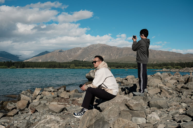 此次旅程也是黃覺與兒子核桃的首次單獨旅行。在新西蘭,黃覺父子倆共同體驗了這片土地的多面魅力。他們身處蒂卡普湖畔的星空下,仰望南半球璀璨的銀河,感受宇宙的浩瀚;乘坐基督城的復(fù)古電車,穿梭于這座充滿歷史感的城市,一邊欣賞街景,一邊聆聽向?qū)еv述基督城的故事,體驗這座城市的復(fù)蘇與活力;搭乘高山觀景火車,從基督城出發(fā),穿越南阿爾卑斯山脈,沿途經(jīng)過雪山、峽谷和森林,靜靜欣賞車窗外的絕美景色,享受這段寧靜的旅程;在電影《指環(huán)王》的取景地霍比屯,他們俯身邁入霍比特人的小屋,仿佛置身于電影中的魔幻世界。