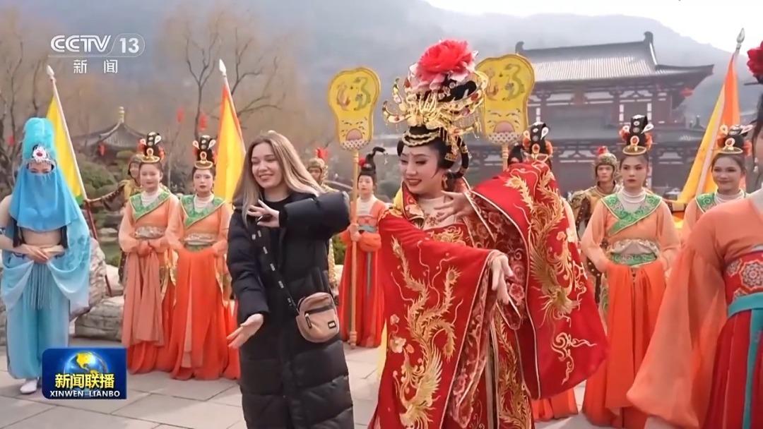 在陜西,多個國家的游客、留學(xué)生在華清宮等景區(qū),體驗(yàn)中國傳統(tǒng)文化。在四川,來自美國、俄羅斯、西班牙等國的游客,通過現(xiàn)場觀影、文化體驗(yàn)、古跡探訪等多種形式感受巴蜀文化。