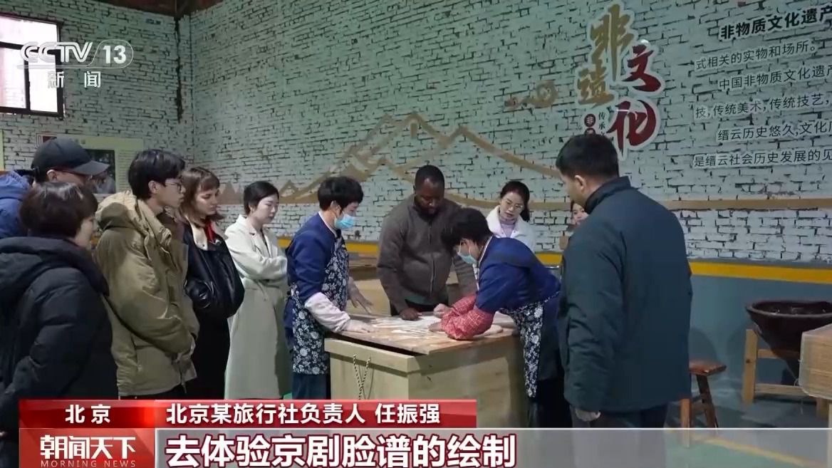 北京某旅行社負(fù)責(zé)人 任振強(qiáng):我們安排在胡同里面去體驗(yàn)京劇臉譜的繪制,然后一些茶藝,還有非遺,增加了一些深度性的文化體驗(yàn)。(來源:央視新聞)
