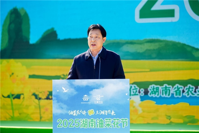 湖南省農(nóng)業(yè)農(nóng)村廳黨組成員、副廳長龔昕在致辭中指出,近年來,湖南省堅決貫徹落實國家保障糧油安全決策部署,持續(xù)打造油料特色千億產(chǎn)業(yè),油菜種植面積從2019年的1861.5萬畝擴大到2024年的2255萬畝,總產(chǎn)量達266.6萬噸,油菜全產(chǎn)業(yè)鏈產(chǎn)值突破570億元。做大做優(yōu)做強油菜產(chǎn)業(yè),農(nóng)文旅融合是關鍵。舉辦湖南油菜花節(jié),就是要以花為媒、借花興業(yè),搭建起一個全方位展示湖南鄉(xiāng)村魅力的大舞臺,推動油菜產(chǎn)業(yè)多元化發(fā)展,帶動鄉(xiāng)村全域富美強。