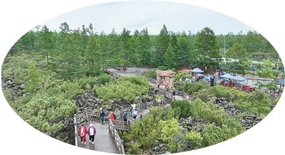 游客在內(nèi)蒙古阿爾山國家森林公園石塘林景區(qū)游玩。
