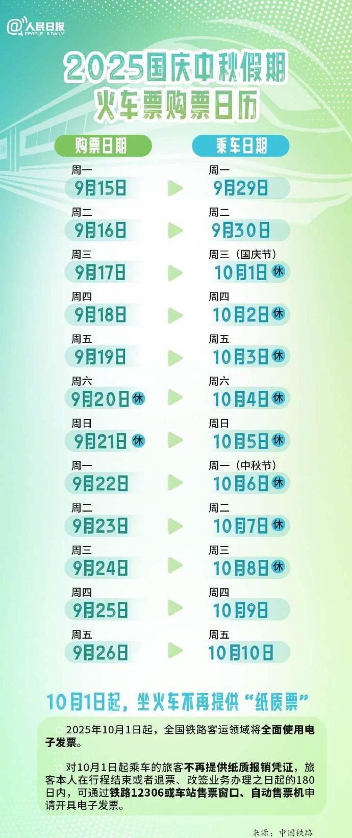 國(guó)慶中秋購(gòu)票4個(gè)關(guān)鍵時(shí)間: