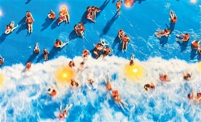 不久前,在江蘇南通森林野生動物園,南通“蘇超”球迷專屬夜公園免費暢玩吸引了眾多“蘇超”球迷。凡持有江蘇城市足球聯(lián)賽任意場次票根的球迷,均可享受一次夜公園免票入園。圖為球迷、游客在專屬夜公園水上樂園戲水。