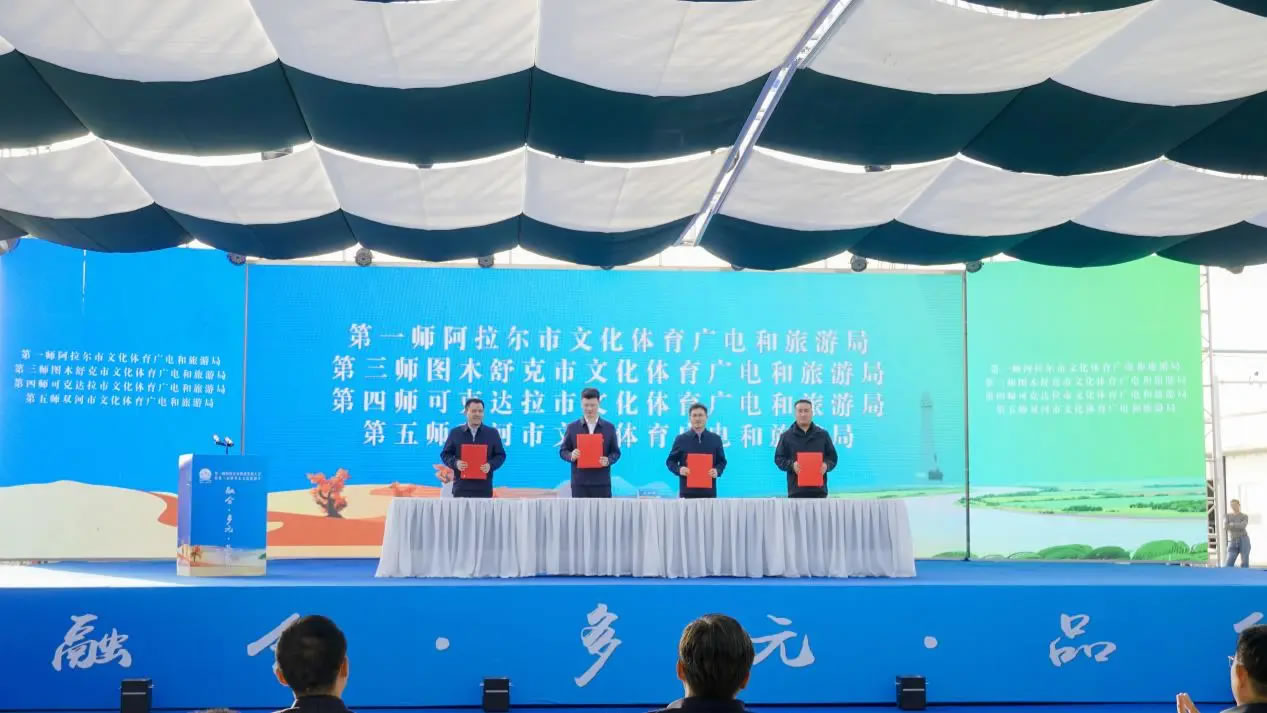 當(dāng)天,第一師阿拉爾市旅游發(fā)展大會暨第三屆塔里木文化旅游節(jié)文旅客商推介會同步舉辦。第一師阿拉爾市文化體育廣電和旅游局分別與第三師圖木舒克市、第四師可克達拉市、第五師雙河市的文化體育廣電和旅游局簽署合作共建協(xié)議,在旅游產(chǎn)業(yè)領(lǐng)域深化合作,推動區(qū)域文旅協(xié)同發(fā)展。第一師阿拉爾市文化體育廣電和旅游局、塔里木文旅集團,以及第一師四團、七團、十六團依次登臺,重點推介了涵蓋沙漠探險、生態(tài)觀光、民俗體驗等多個領(lǐng)域的文旅項目。