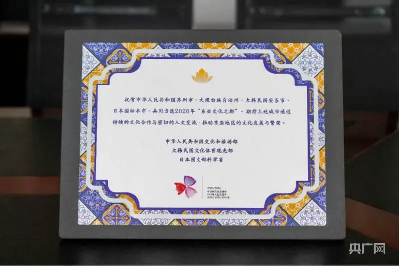 央廣網(wǎng)大理1月7日消息(記者 魏文青)近日,2026年“東亞文化之都”評選結(jié)果在北京揭曉,大理白族自治州成功當選,成為云南省首個獲此殊榮的城市,也為云南參與東亞城市文化交流打開新的門戶。